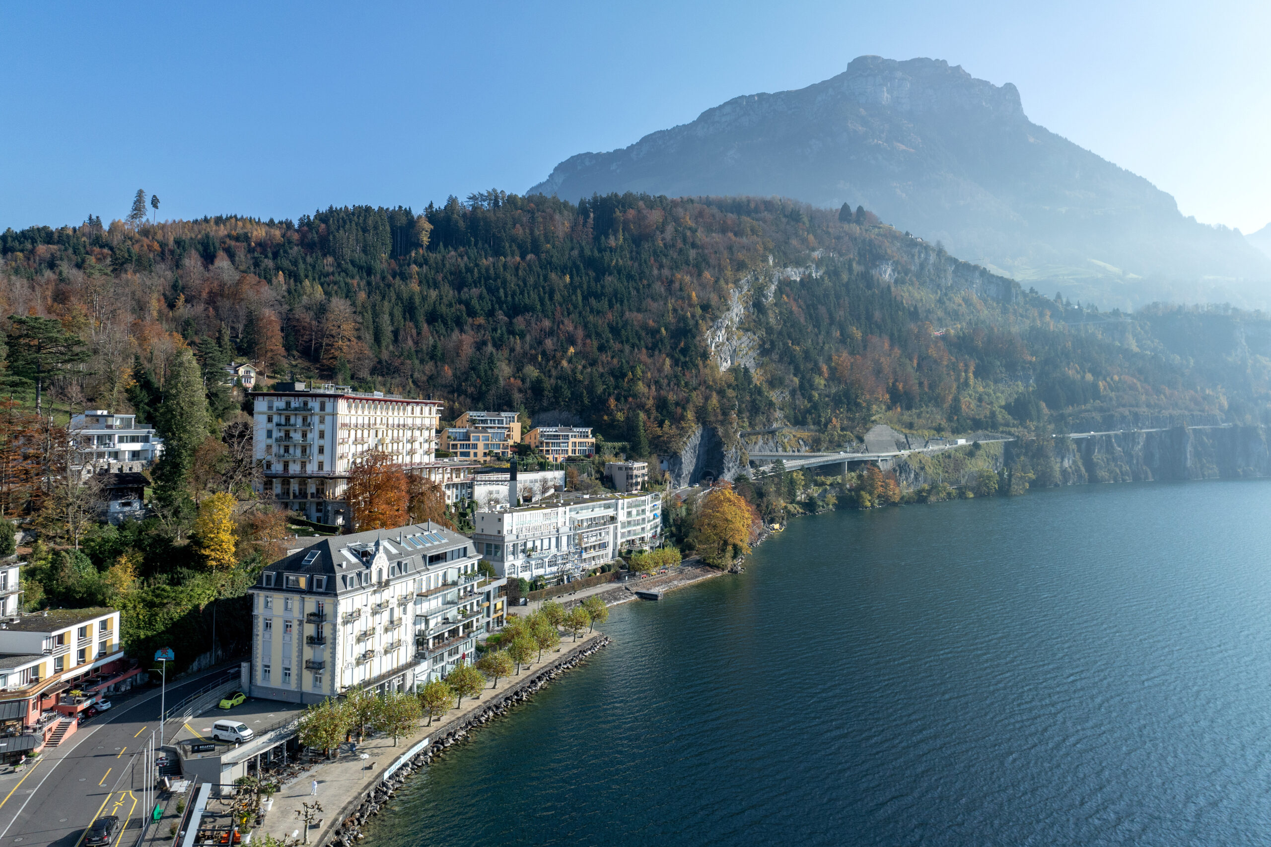 Das Bellevue Brunnen befindet sich direkt am Ufer des Vierwaldstättersees, nur 5 Gehminuten vom Bahnhof entfernt. Gäste profitieren von einer hervorragenden Erreichbarkeit mit Auto, Bahn oder Schiff – nur 30 Minuten von Luzern mit dem Auto – und geniessen gleichzeitig die einmalige Aussicht auf See und Berge.